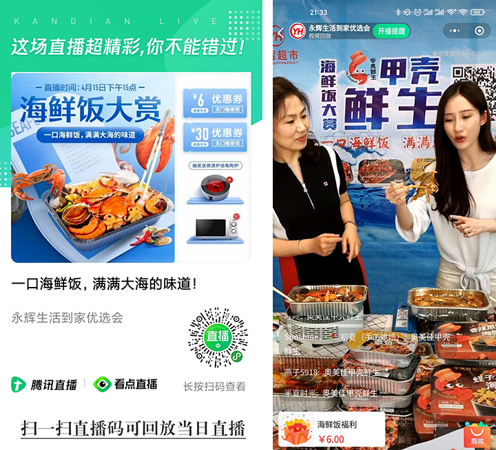 2020年4月15日,“海鮮飯大賞”線上直播,有家電抽獎環(huán)節(jié),一小時多的直播有70000+的瀏覽,8000+的觀看人數(shù)。